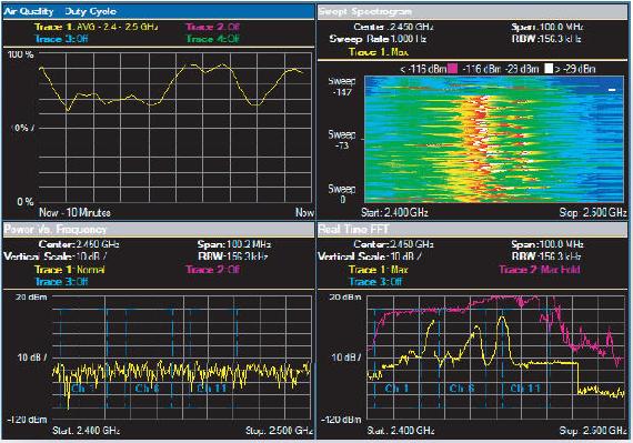- 即时发现特殊的射频干扰设备并识别包括蓝牙、手提电话、微波炉和摄像机